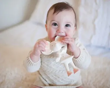Safe teething toys and rattles made from 100 % organic natural rubber, BPA‑free, phthalate‑free, PVC‑free—and biodegradable